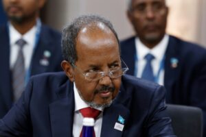 Jihadist threat: President Hassan Sheikh Mohamud has declared ‘all-out war’ on Al-Shabaab © POOL/AFP/File...